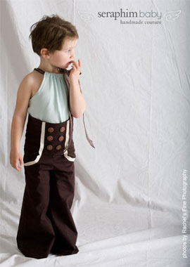 How heavenly is this little outfit from Seraphim Baby? Gorgeous high-waisted sailor pants for little girls with stunning piped pockets, oversized buttons, and extra wide legs teamed with a soft and luxurious bamboo halter top. We discovered this little Etsy treasure thanks to the {KID} Independent blog, and we couldn’t help but share.