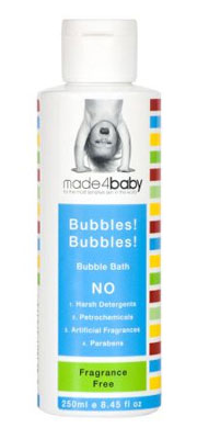 Made4Baby_Bubble_Bath.jpgLast week we featured the Boon bath toys, and good old "Bob" in the bubbles.  With people then emailing us to ask whether or not we actually used a baby friendly bubble bath, we couldn't help but follow up with a feature on the Made4Baby Bubbles! Bubbles! Fragrance Free bubble bath which is exactly what we do use.