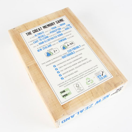 Not only is it a truly classic game produced in true New Zealand style, it’s printed on recycled card and printed using soy based inks. The box is made from untreated NZ pine. Endemic World predicts that it will soon be found in most kiwi baches next to Scrabble and Connect4, I think they may be right.
