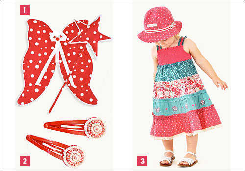 1. Magical fairy wings are every little girls dream, and the bold red polka dots are especially fun for summer! Cotton print with lace and ribbon trim, and comfortable elasticised shoulder straps. 26 cm x 32 cm. Price: