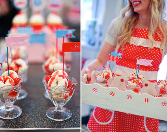Grilled cheese, mini hamburgers, milkshakes, and everything with a cherry on the top.